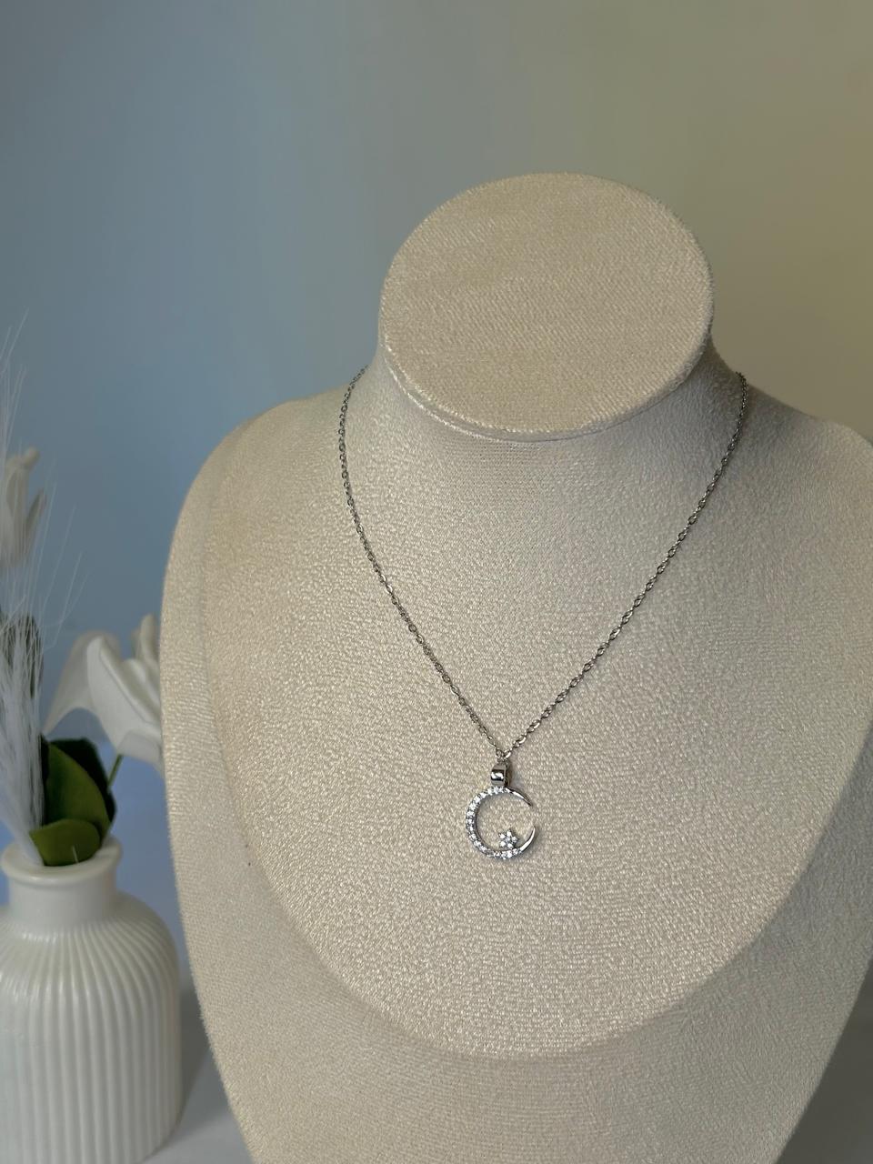 Capture the magic of the night sky with this stunning moon and star pendant, delicately embellished with shimmering crystals for a touch of celestial elegance. Crafted from premium, durable stainless steel, this tarnish-resistant necklace is designed to maintain its brilliant silver shine through every adventure. The 45 cm chain includes a 5 cm extension, ensuring a perfect, adjustable fit for any neckline or layering style.