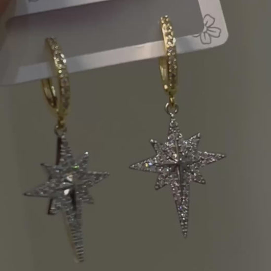 Shine bright with these stunning starburst dangle earrings, meticulously crafted with high-quality platinum plating for a brilliant, long-lasting finish. These earrings feature shimmering pave-set crystals that capture the light beautifully, making them the perfect celestial statement piece for both day and night.