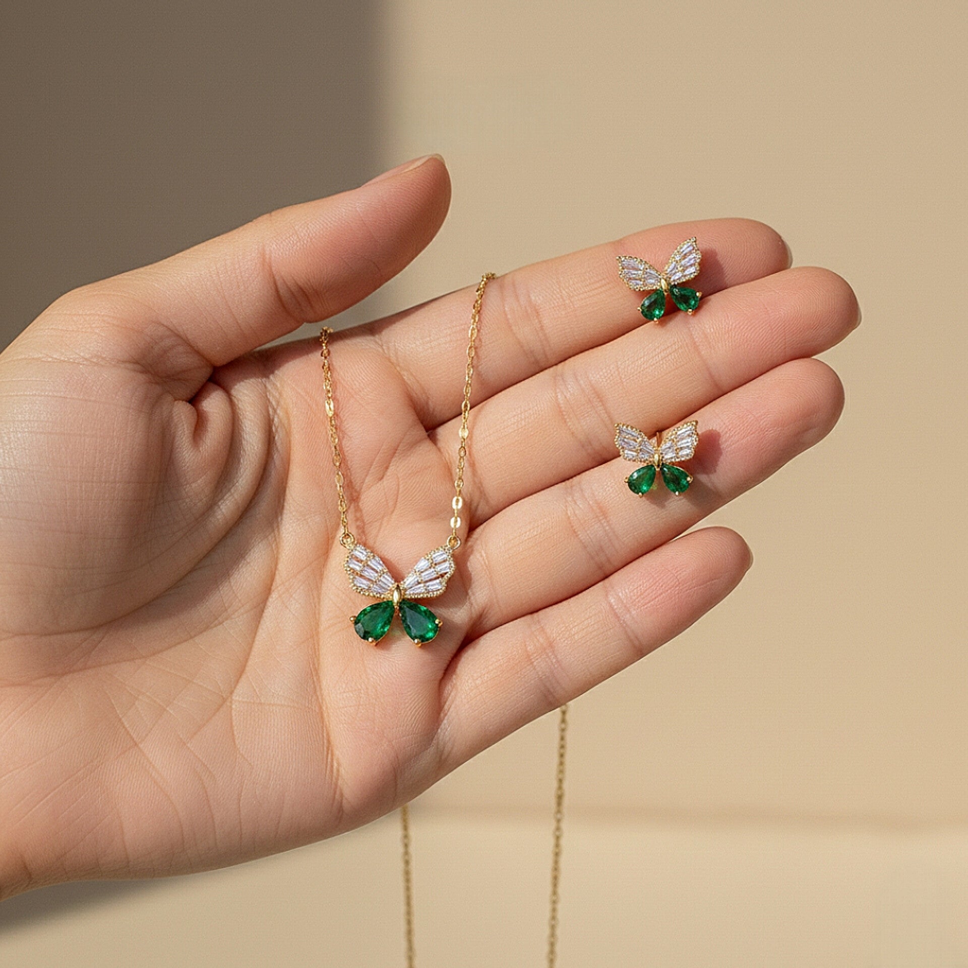 Emerald Butterfly Jewelry Set