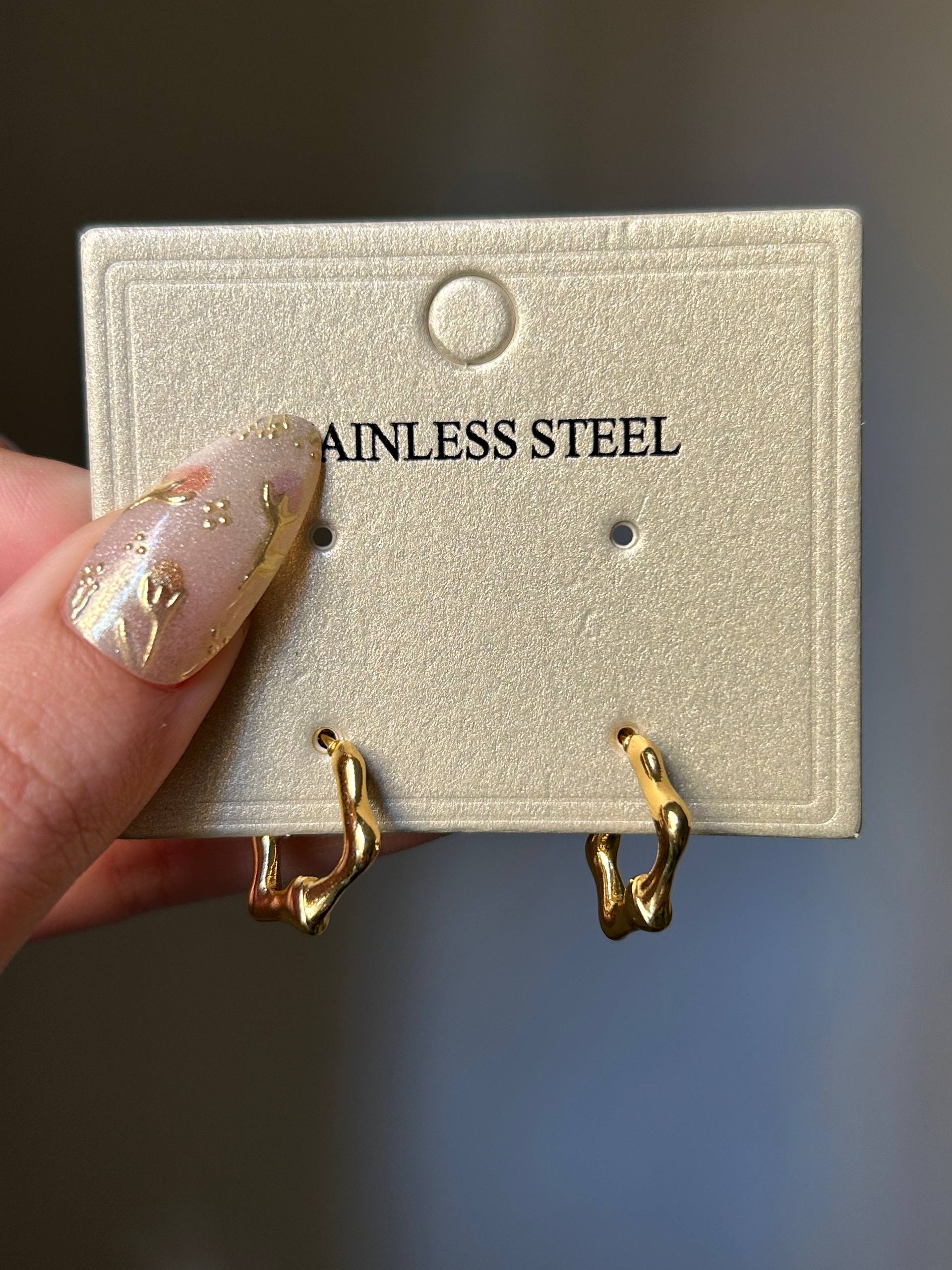 Elevate your everyday look with these uniquely sculpted hoops featuring an artistic, organic silhouette. Crafted from durable stainless steel with a high-shine gold finish, they offer a bold contemporary edge without the weight. These are the perfect tarnish-resistant statement pieces for those who love modern, minimalist luxury.