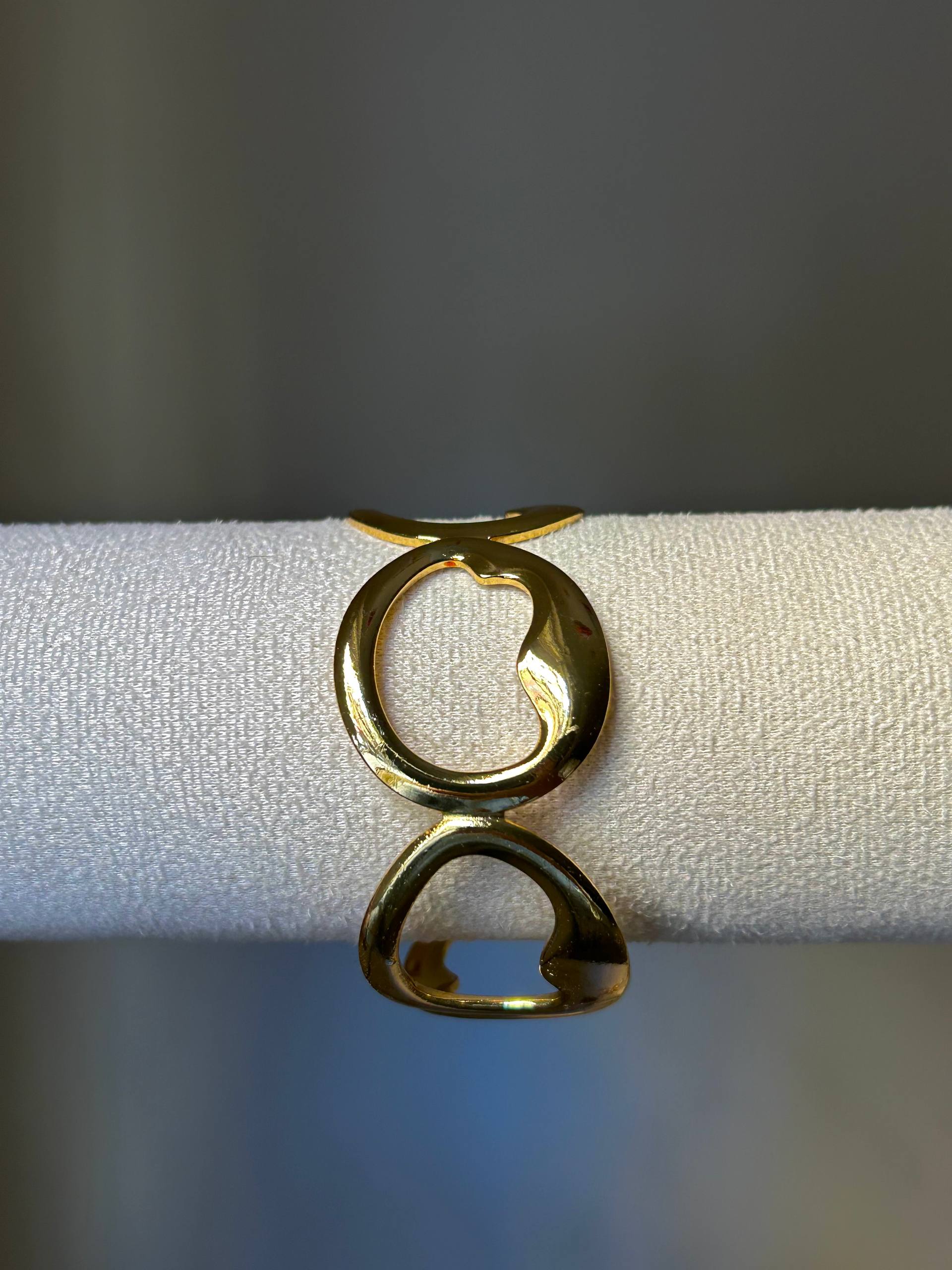 Make a romantic yet bold statement with this wide-profile cuff featuring a series of interconnected, sculpted heart motifs. Expertly crafted from high-grade stainless steel, this durable piece offers a high-shine gold finish that is tarnish-resistant and designed for long-lasting wear. Its artistic, open-work silhouette provides a modern, high-fashion aesthetic, making it a perfect standout accessory for those who love bold, symbolic jewelry.