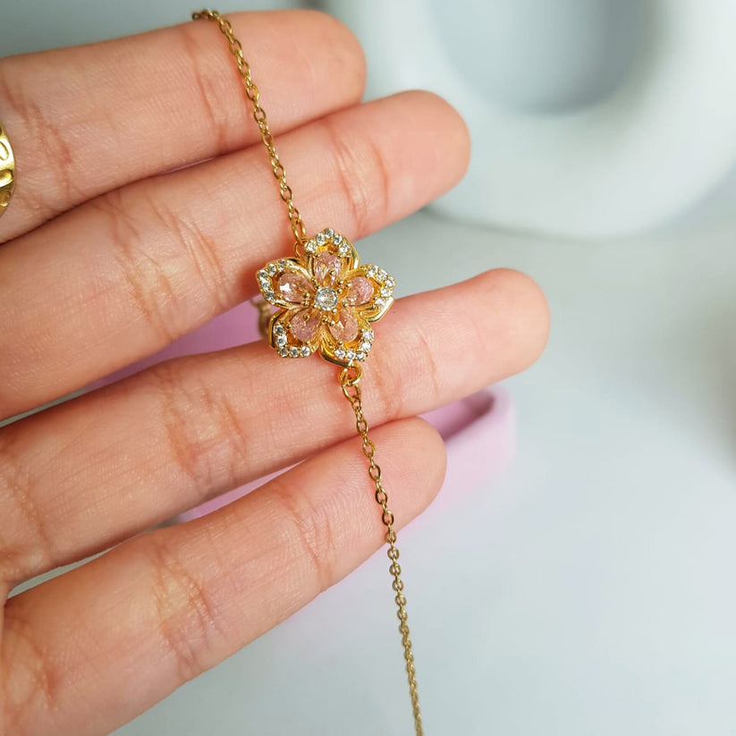 Add a touch of fairytale magic to your everyday look with this stunning, enchanting bracelet. Inspired by the legendary Rapunzel flower, this elegant piece features a mesmerizing spinning floral charm that dances with your every movement.