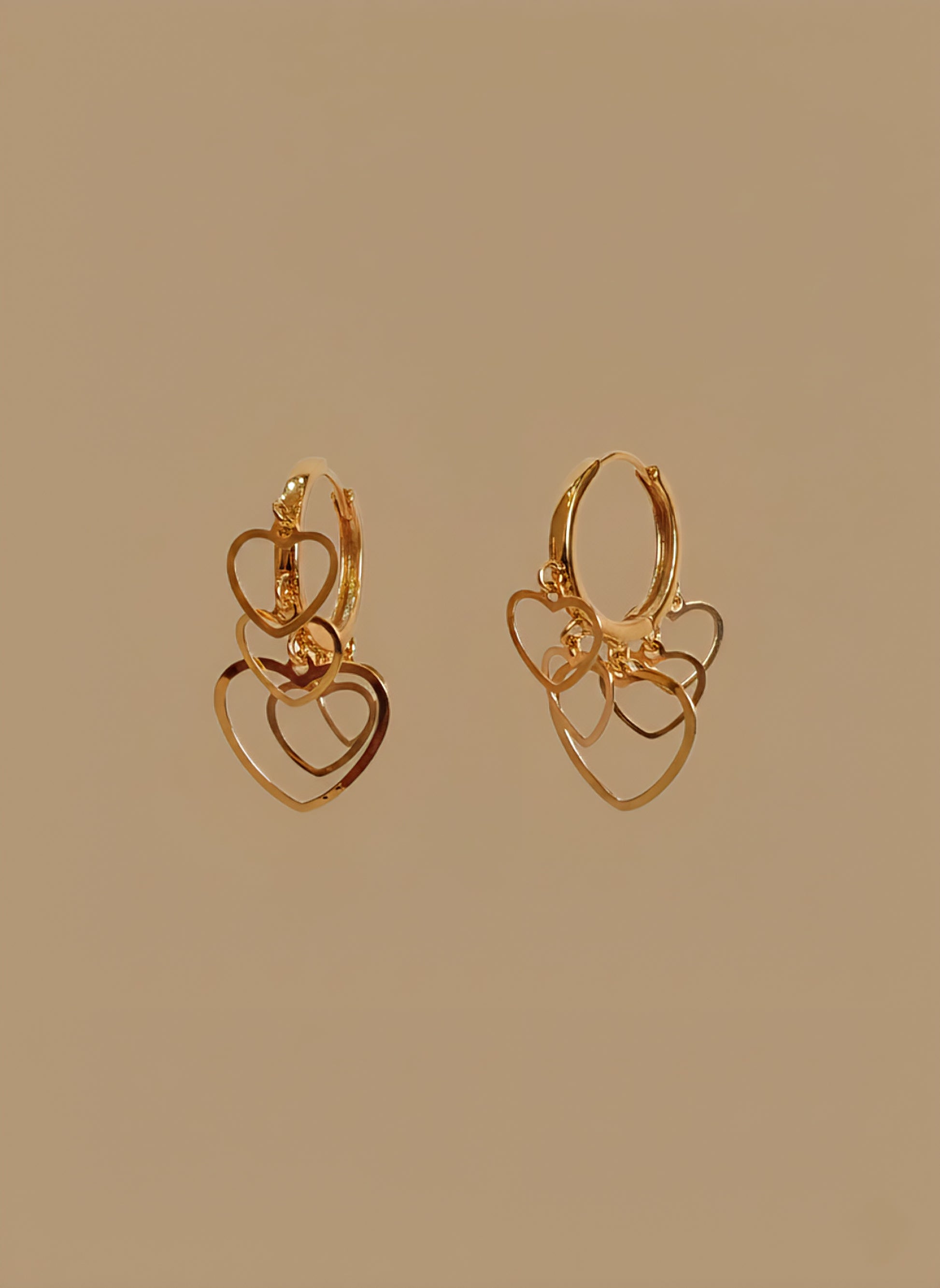 Celebrate love and style with these charming gold-plated hoops featuring three delicate dangling hearts. These earrings offer a playful yet elegant movement, making them the perfect accessory to add a romantic touch to any outfit.