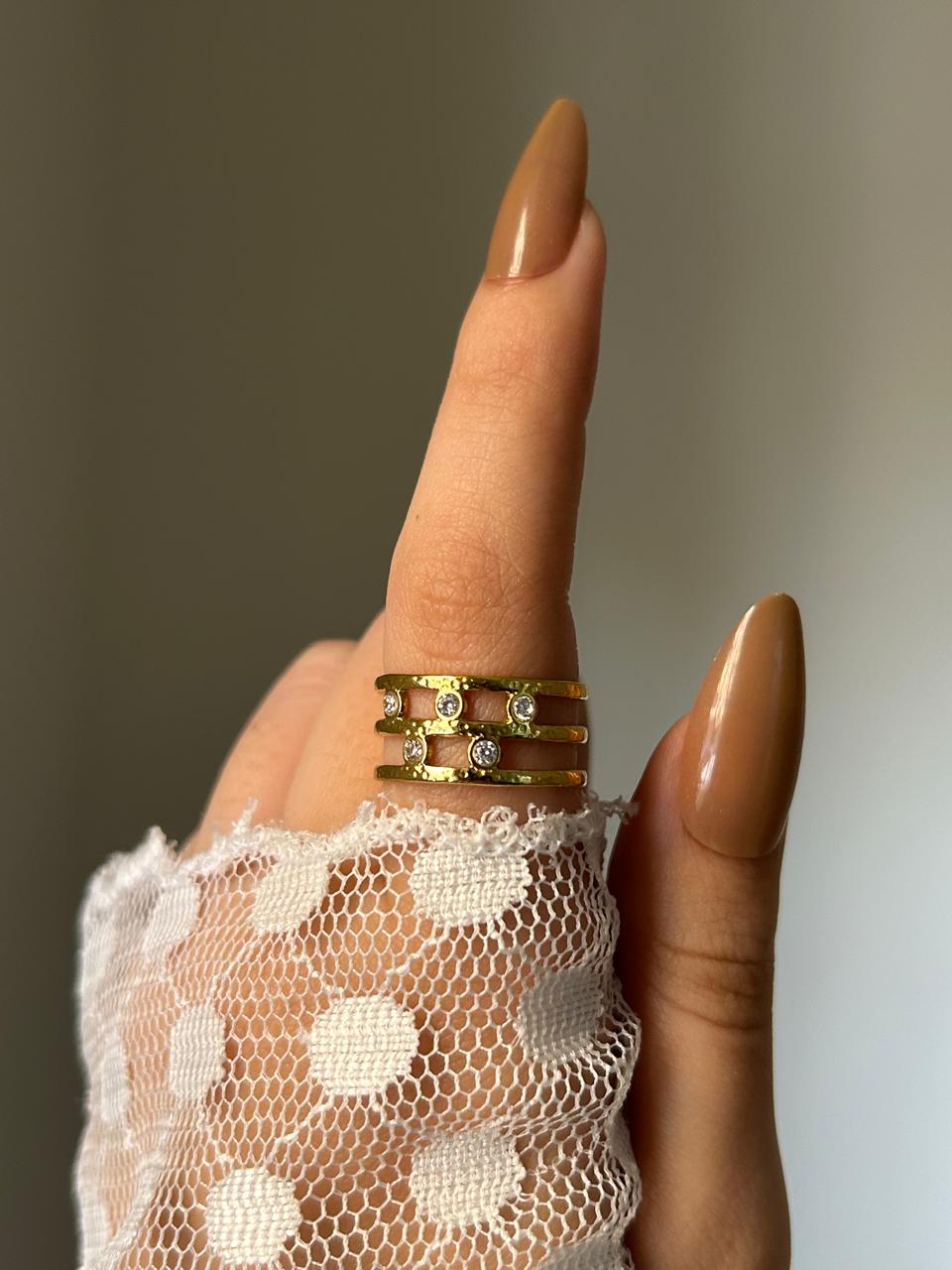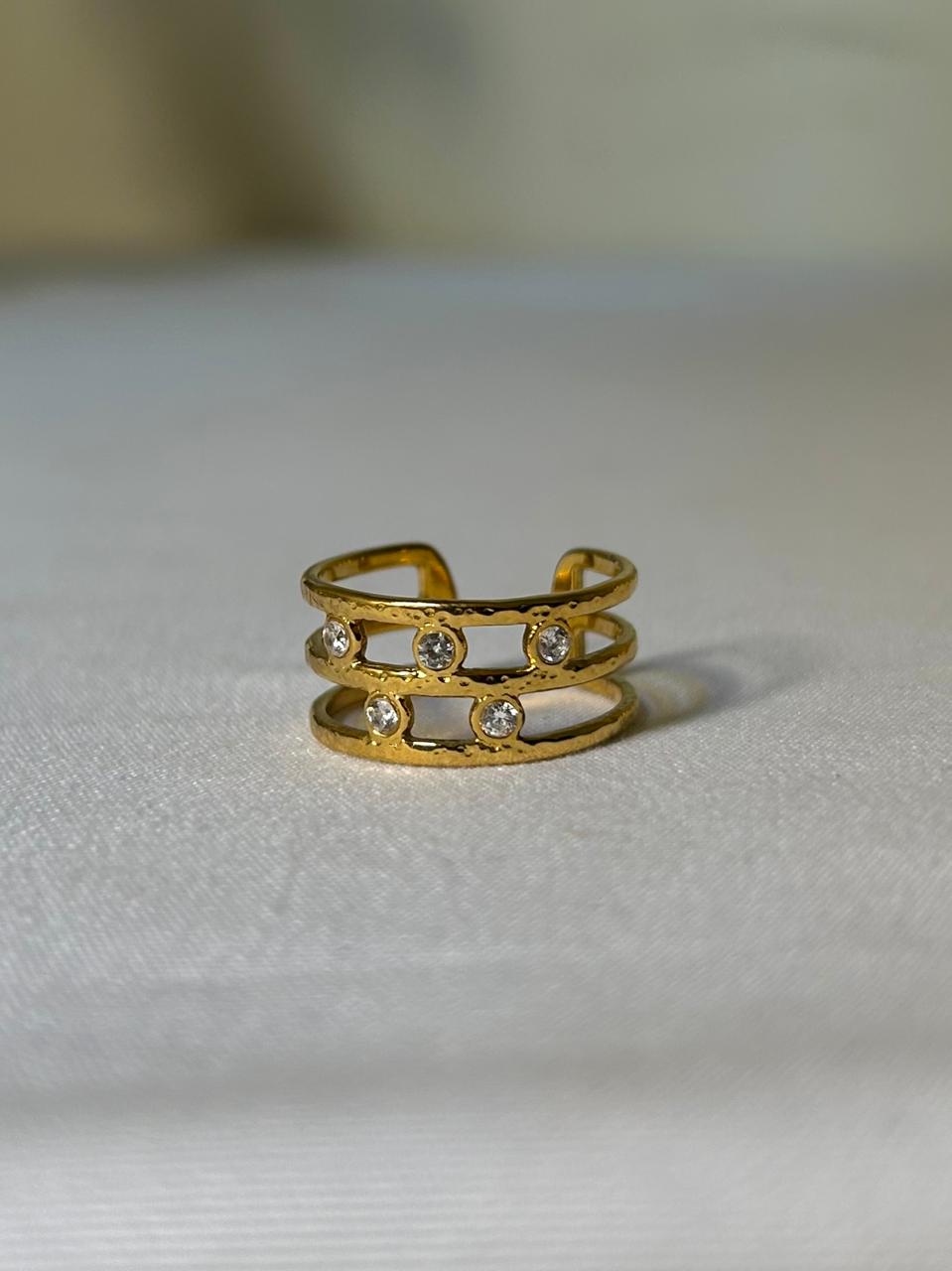 Elevate your everyday look with this striking cage-style ring, featuring a hammered finish and sparkling bezel-set stones for a touch of modern luxury. Crafted from durable stainless steel, this tarnish-resistant piece offers a high-end look that stands the test of time. The free-size design ensures a perfect, comfortable fit on any finger, making it a versatile must-have for your jewelry collection.